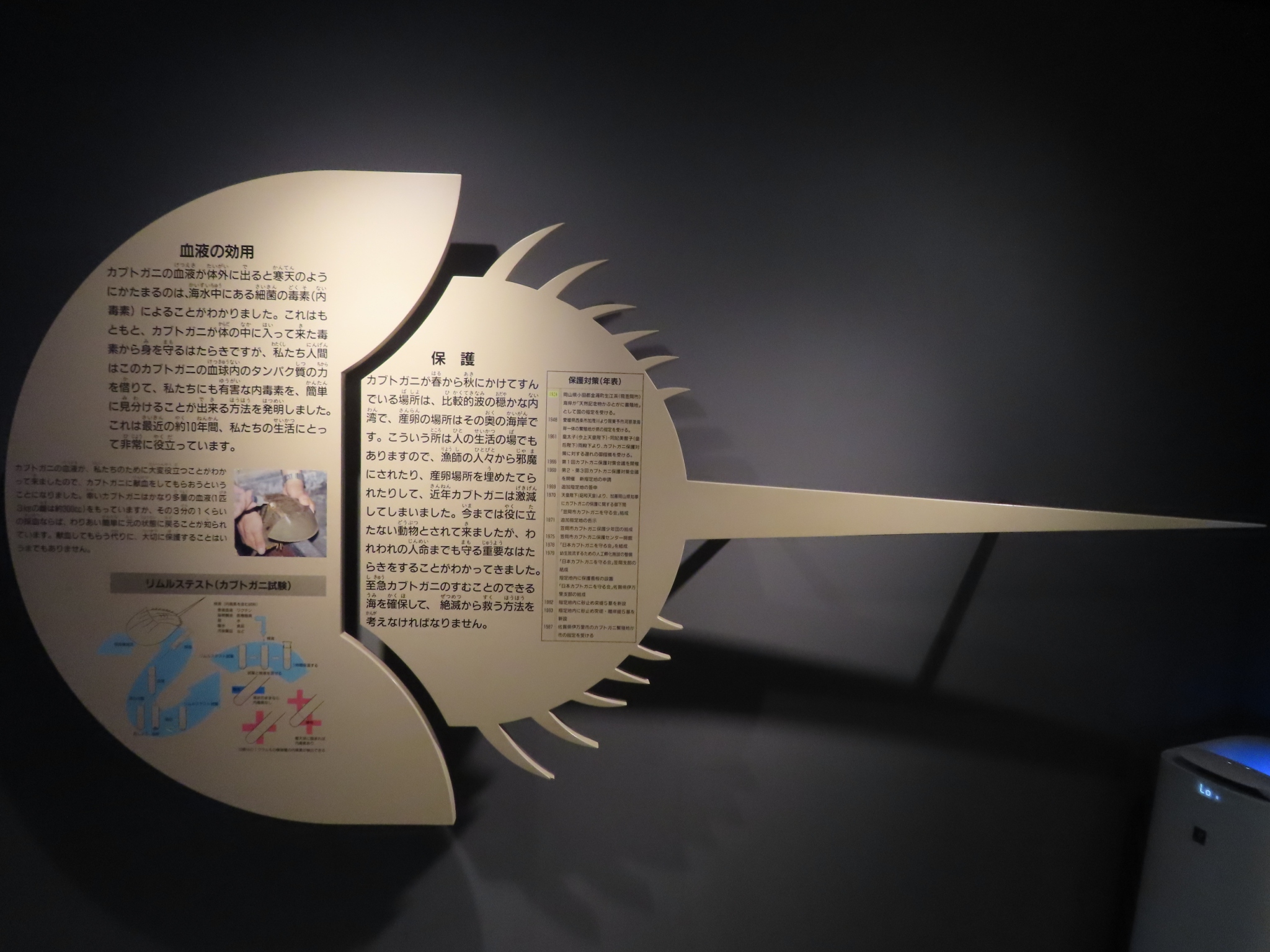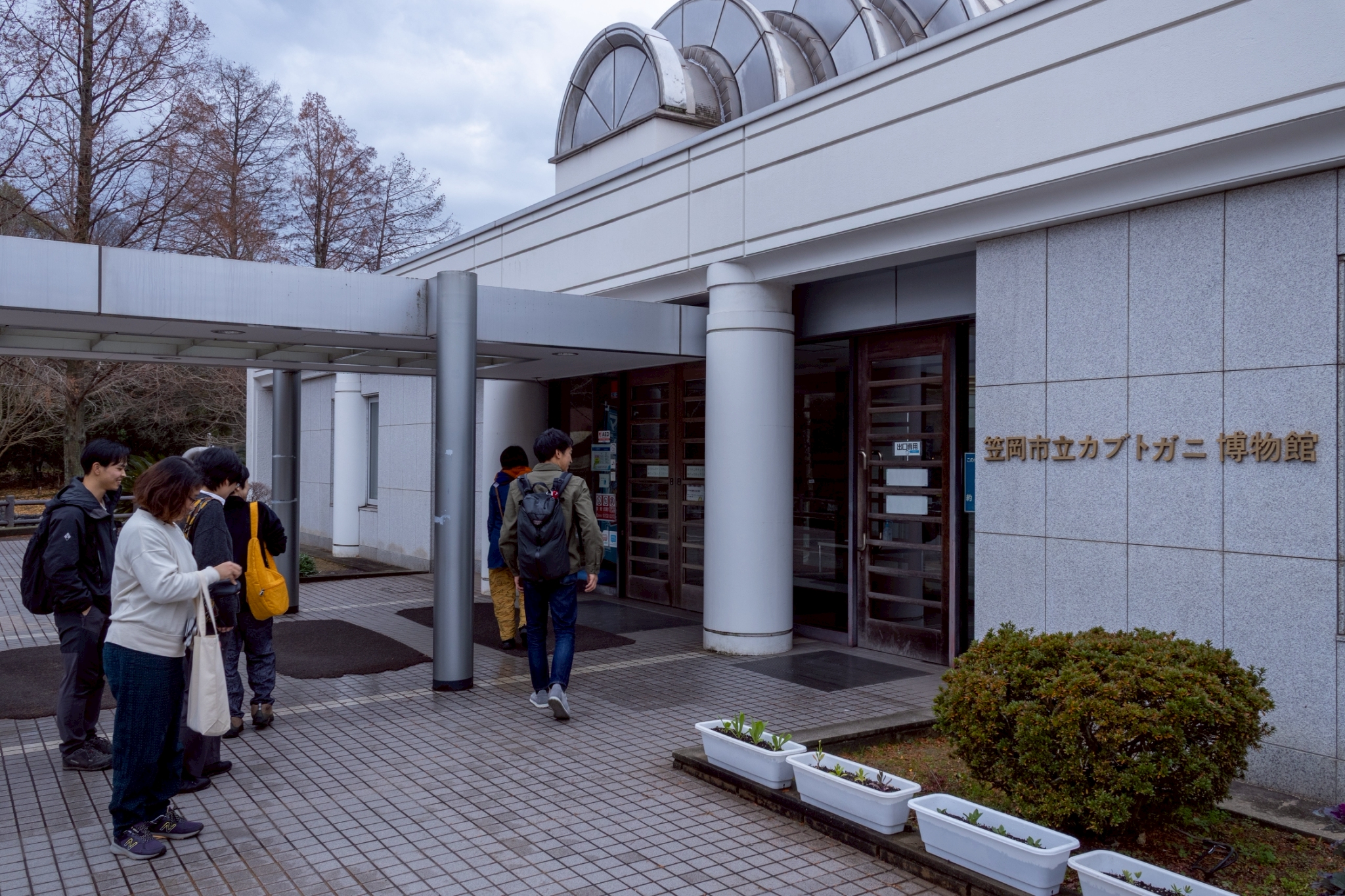 初日に訪れた笠岡市立カブトガニ博物館では、カブトガニをメインとし、恐竜をはじめとする古代生物を幅広く展示することで、子どもたちの興味を惹きつける工夫が見られました。カブトガニの形をした説明看板や、入口に飾られた「千羽鶴」ならぬ「千匹カブトガニ」、実際に触れることのできる剥製や体験コーナーなどは、来館者の関心を高める構成となっていました。また、「学芸員チャレンジ」といった地域の高校生たちが地域の自然や学芸員という専門職に触れる取り組みや、デザイン性と実用性の高いオリジナルグッズの展開などは、高原の自然館で課題となっているミュージアムグッズ展開の参考になる事例でした。
