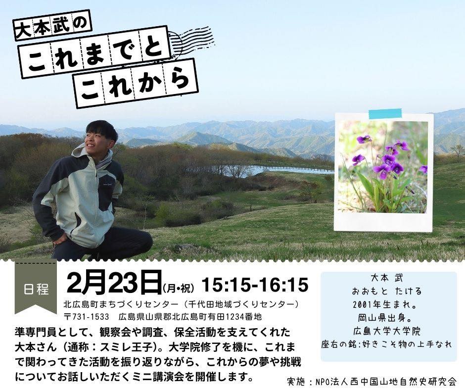 西中国山地自然史研究会の準専門員として、観察会や調査、保全活動を支えてくれた大元さん(通称:スミレ王子)。