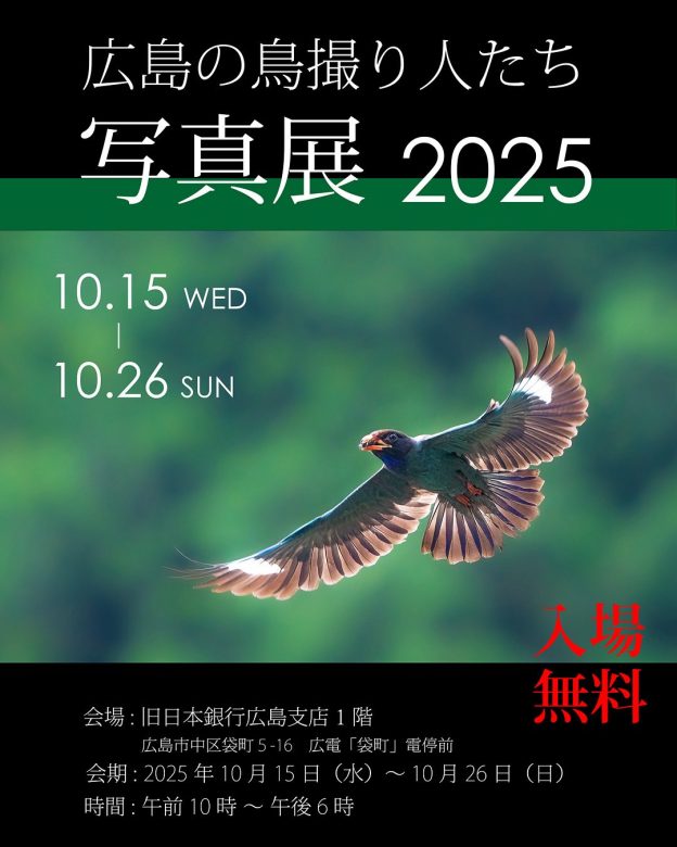 広島市内で「広島の鳥撮り人たち 写真展 2025」が開催されます。