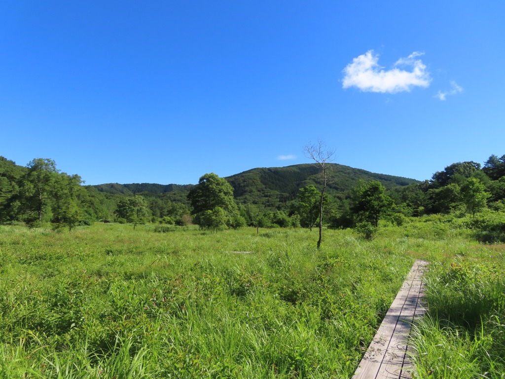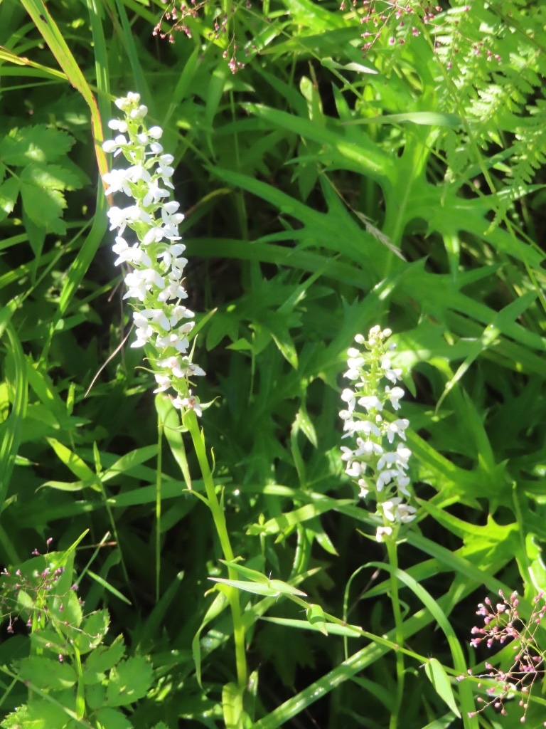 緑の中に、スッと立つ白は、植物なのに「チドリ」と名前がつく「ミズチドリ」。湿原ならではの花の一つだ。