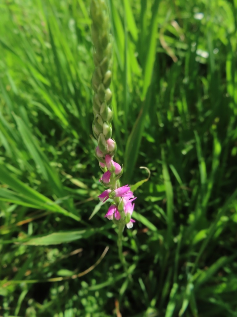 ぐるぐると捩れながら、かわいい小さな花をつけるのはネジバナ。