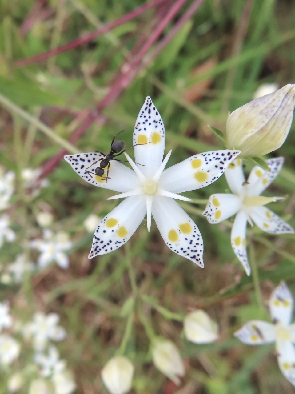 模様の可愛いアケボノソウの黄色い部分は、あまい蜜線。アリが蜜を求めて遊びにきていた。