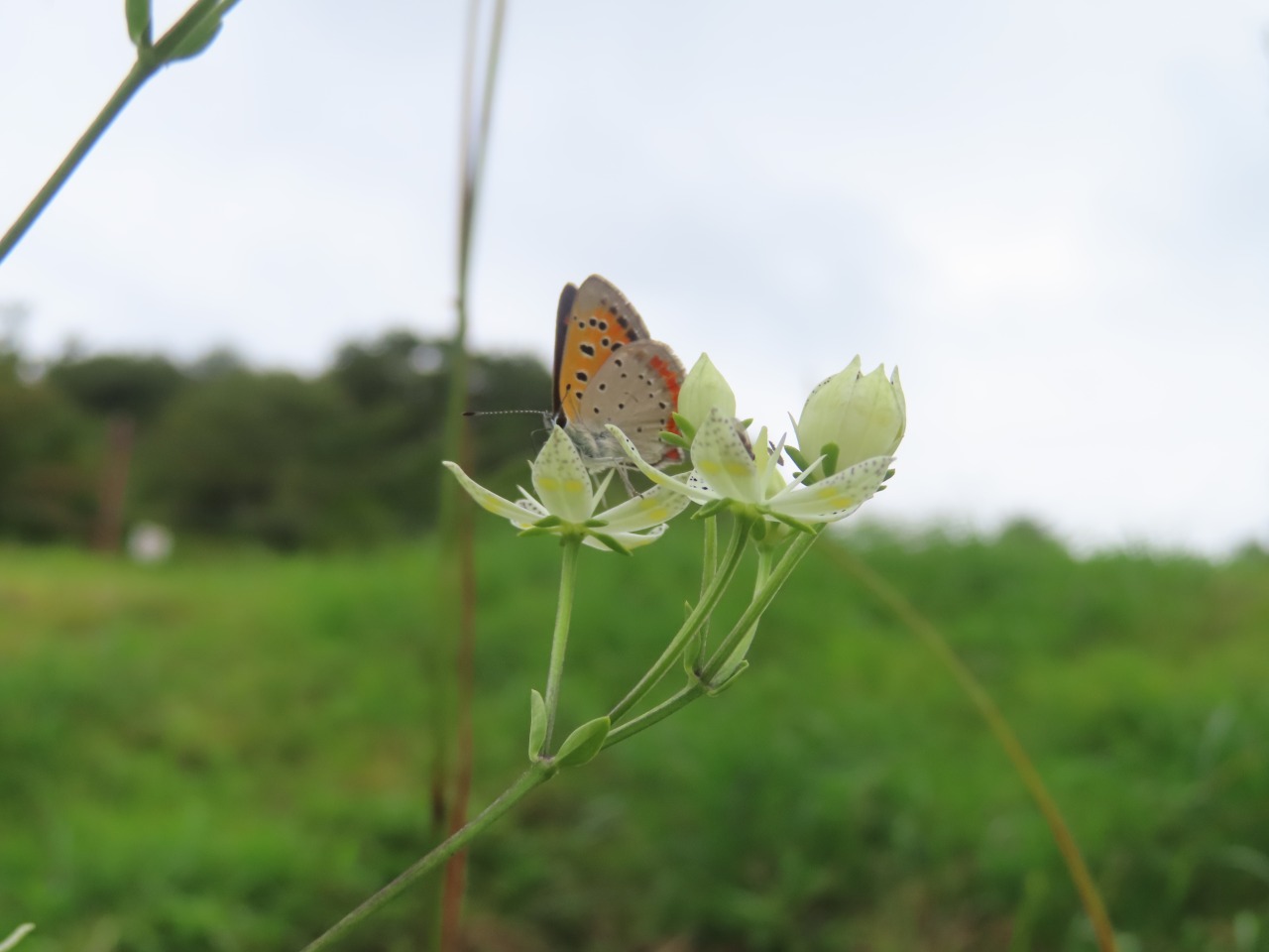 シジミチョウの一種、ベニシジミもアケボノソウに来訪。
