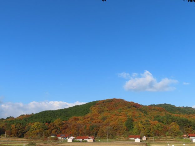 11月に入り、八幡周辺の山々が一気に色づき始め、今まさに「秋真っ盛り」の景色となっています。
