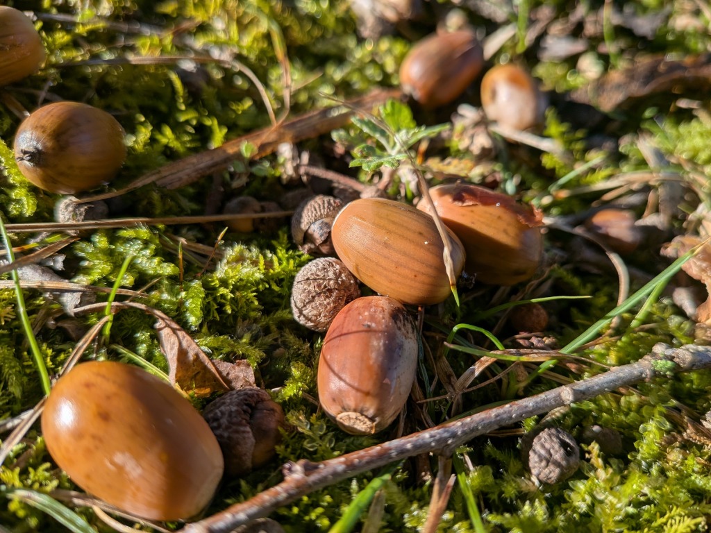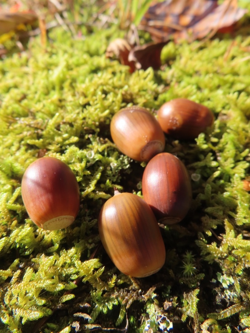 駐車場のコナラをよく見ると、上の方から少しずつ、黄色く染まってきています。