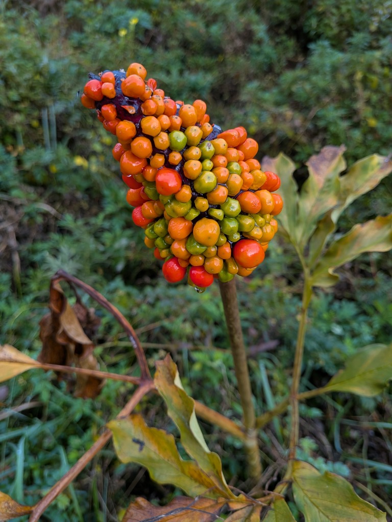 道路脇でよくみる、真っ赤な実は「マムシグサ」の実。